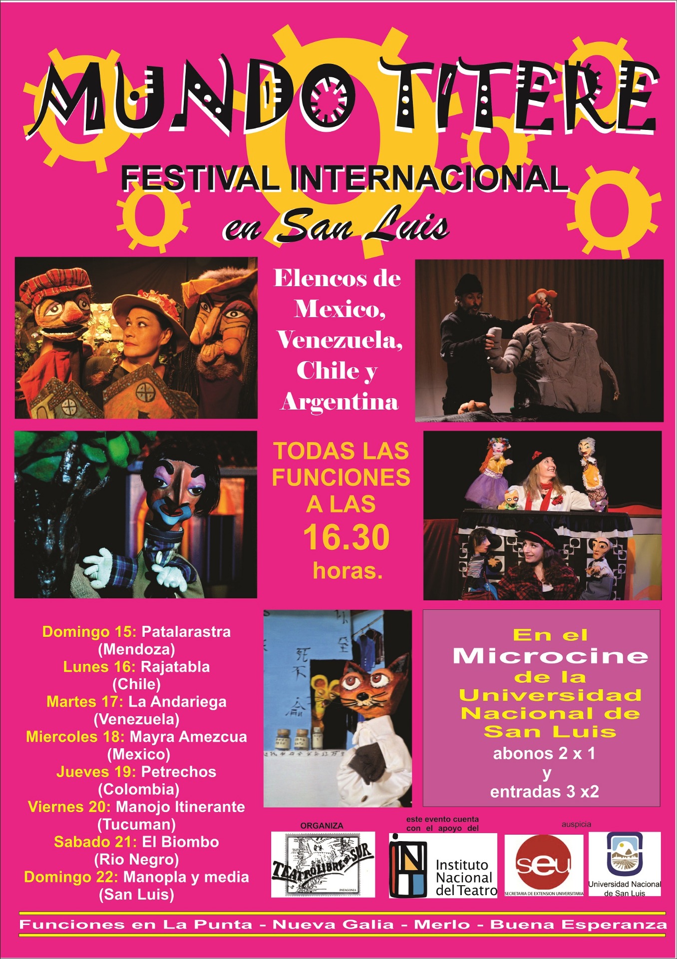 En el 2019 realizaremos la 3° edición del festival Mundo Títere. Los esperamos entre el 13 y 20 de Julio en el microcine de la Universidad de San Luis. Vienen elencos de Colombia, Venezuela, Ecuador y Argentina. ¡Y que vivan los Títeres!